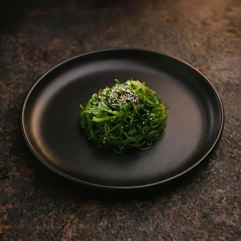 Нежные водоросли чука с ароматным ореховым соусом и кунжутом. Освежающий салат с насыщенным азиатским вкусом.